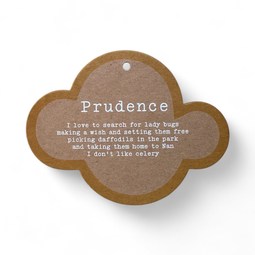 Prudence is made with the most divine caramel plush fabric and wears a knitted Australian merino wool blush pink scarf with chocolate pom poms. At 20cm, she is perfect for little hands. She loves to search for lady bugs and making a wish, pick daffodils in the park and take them home to her Nan. She doesn't like celery.