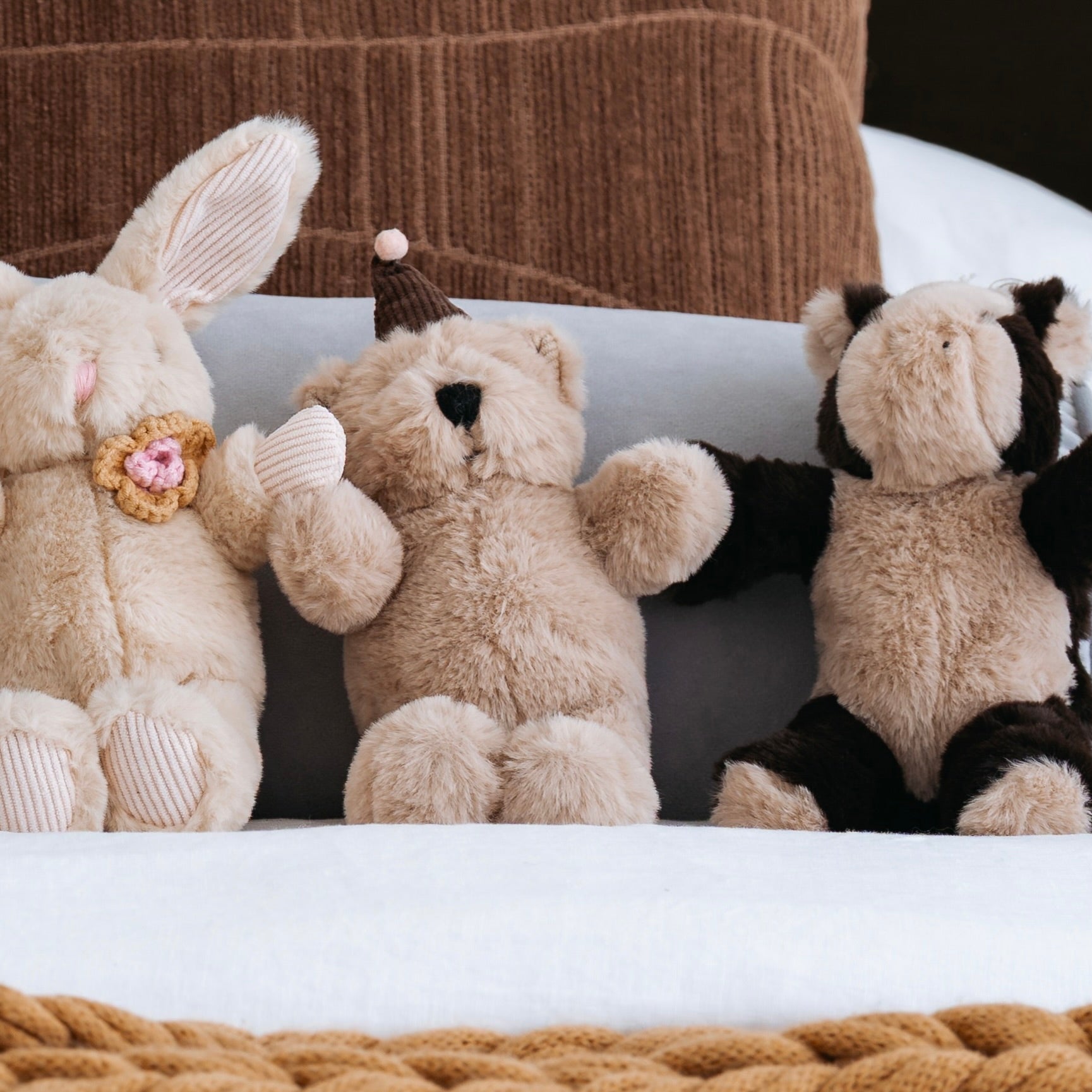i absolutely love frankie rabbit and have re named her emily from one of my favourite shows. She’s super soft and cuddly and i love the different fabric in her ears and feet. she’s great quality with the cutest little scarf. i love her and would highly recommend her <3 i also have Murphy bear who i’ve re named spencer and i love him too